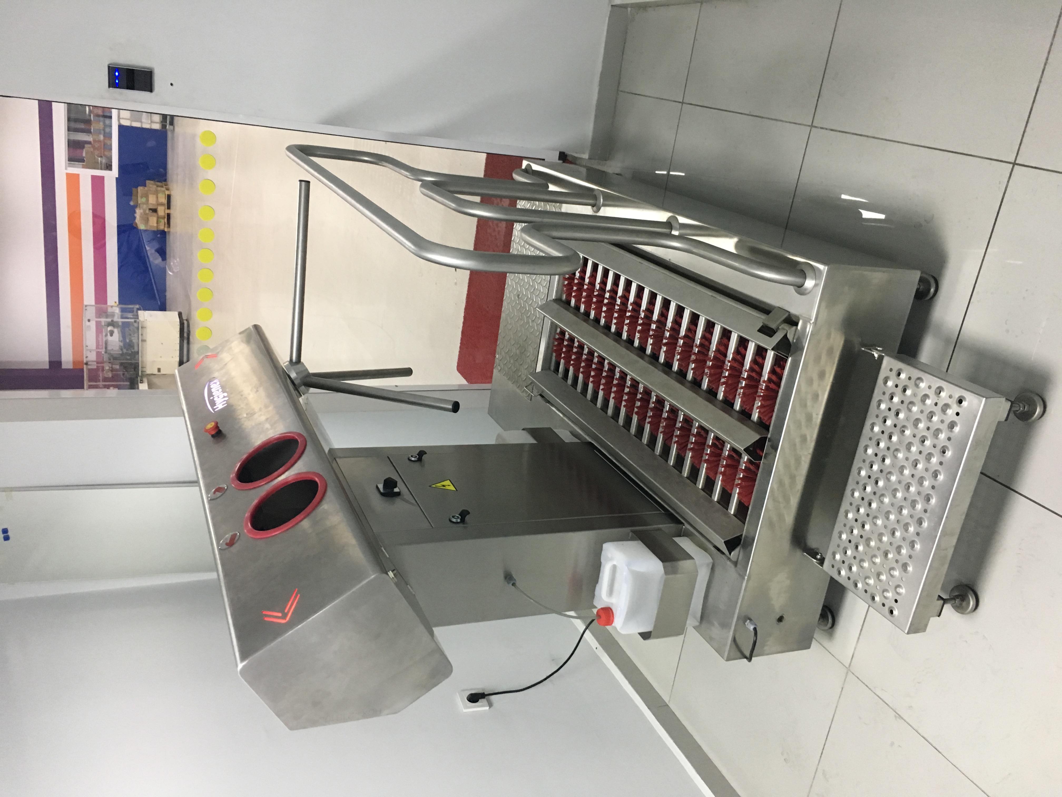 HGX-213 Taban firçali hijyen hatti,Taban Firçali Hijyen Bariyeri, PLC geçis kontrol sistemi ile üretim alanlarina giriste taban firçalama yapar. Çift El Dezenfektan imkani ile komple bir ürün halinde imal edilmistir.