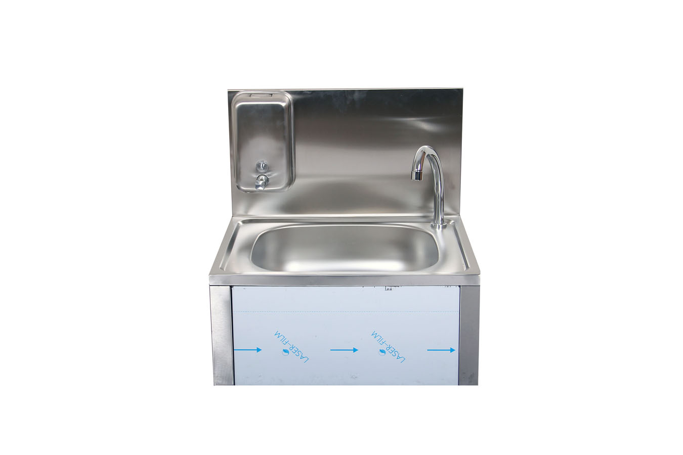 Dizden kumandali evye, kisisel hijyen için birebir çözümdür. Lavabonun kendine özgü ergonomik tasarimi bulunmaktadir ve dizden kumanda ile temassiz el yikama saglar, enfeksiyon riskini en aza indirir. Lavabo, musluk ve sabunluk tamamen paslanmaz çelikten imal edilmistir.