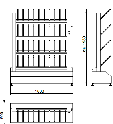Uzunluk 500 mm / Genislik 1600 mm / Yükseklik 1980 mm |
